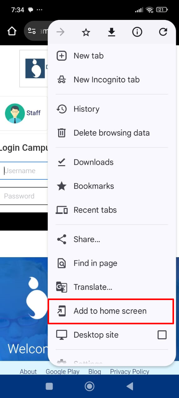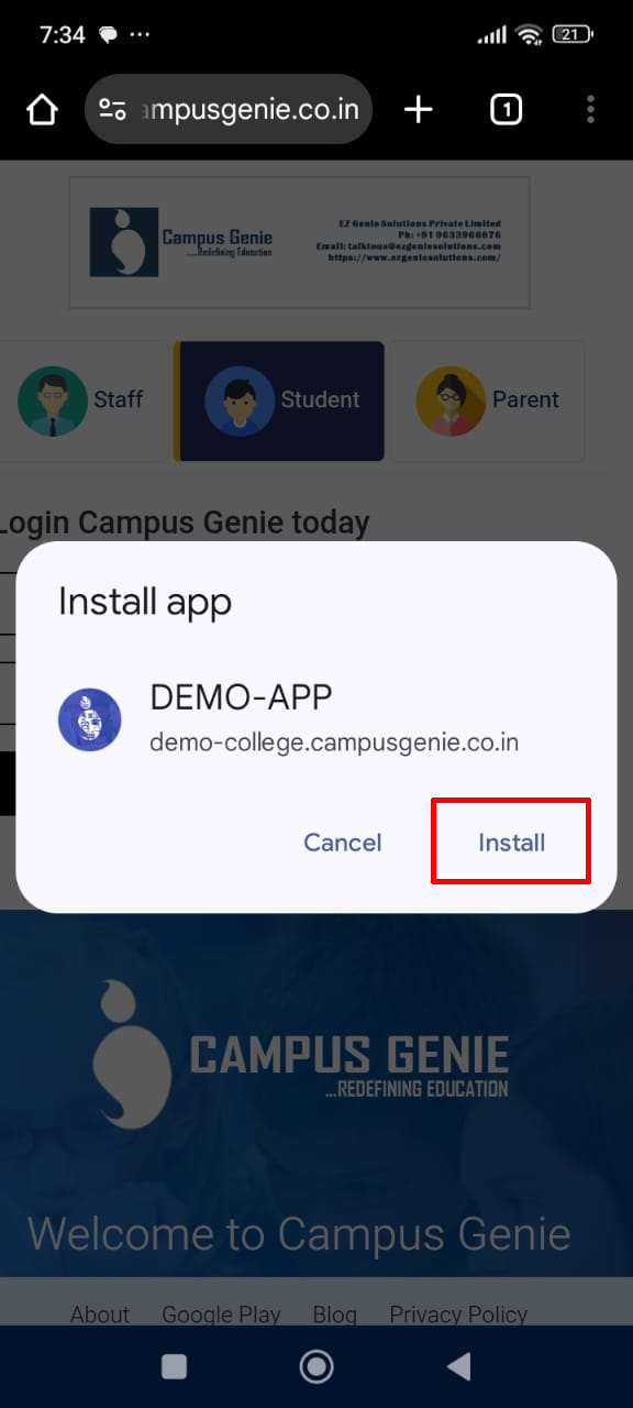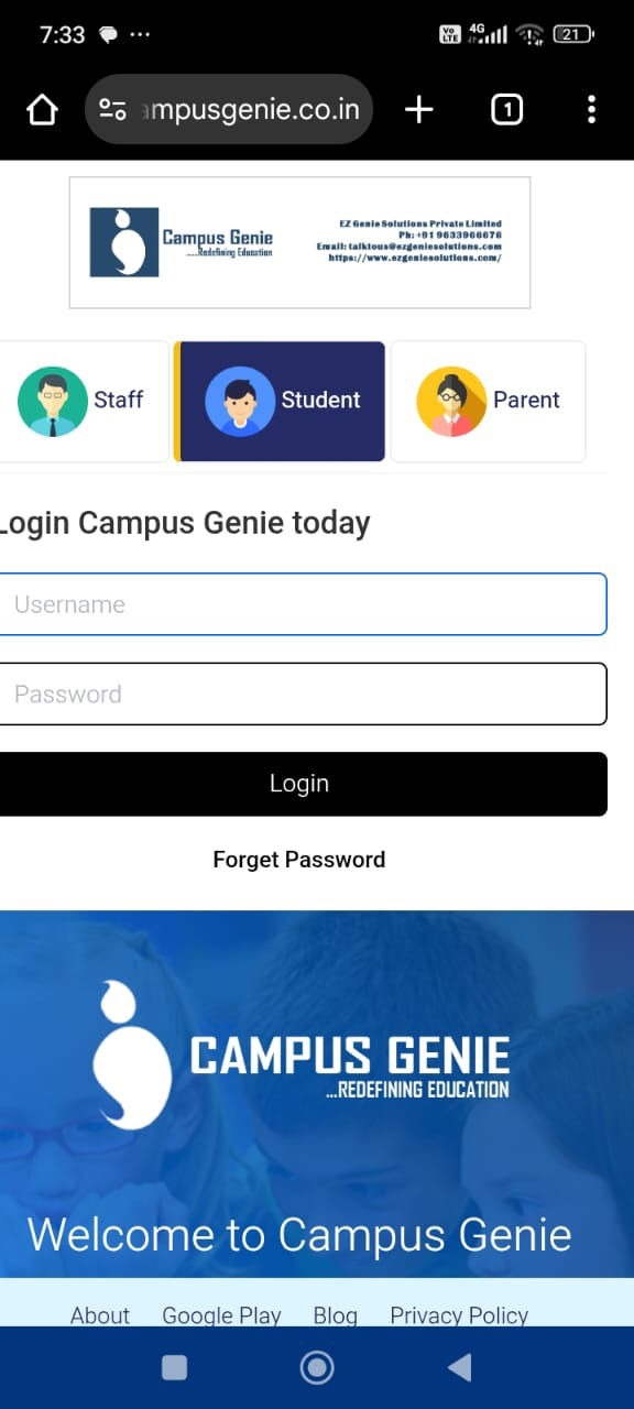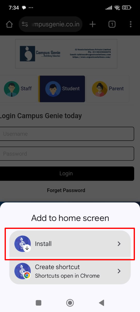 Open Chrome browser on your mobile and type your campus url (https://snckollam.campusgenie.co.in) in the search bar